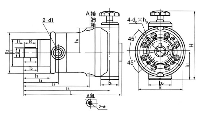 SCY型轴向柱塞泵,其原理为转动手轮使变量活塞上下移动,带动变量头倾斜角变化,改变柱塞行程长短,达到变量的目的。这种变量型只适用于不频繁变量,而且不需要远距离操纵的情况下。 |